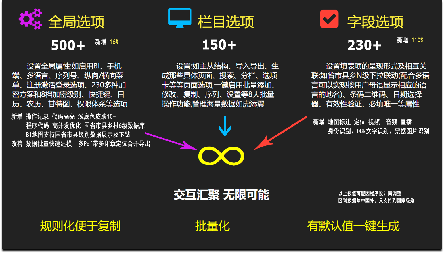 并通过模板化复制、批量操作方法、批处理,包(pack)技术等一系列技术手段,进一步降低管理系统开发成本