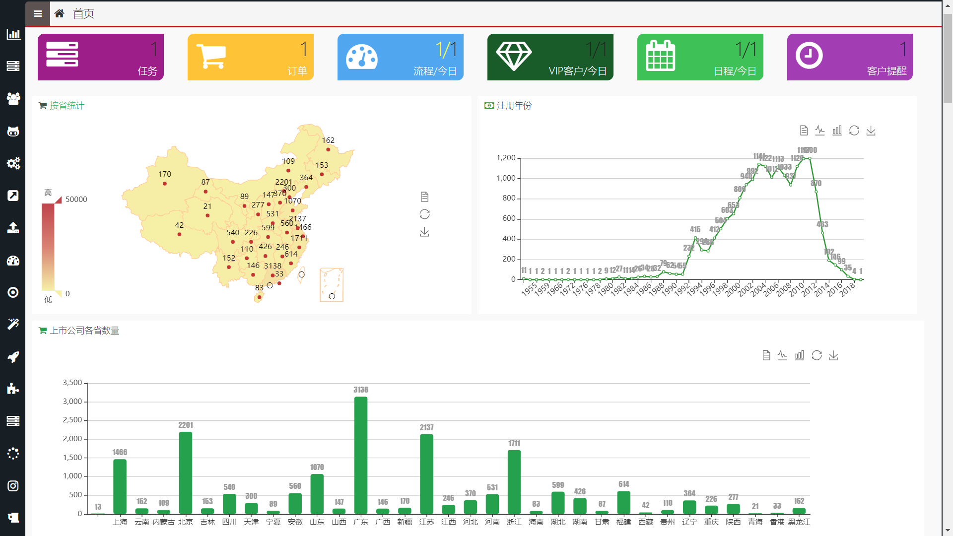 3. 图表形式可自定义 地图、折线、柱图、饼图等